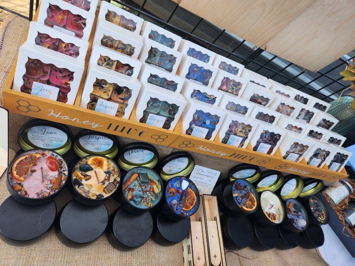 We offer these in 6oz, 3oz, 0.5oz tealights, Incense sticks, and for those unable to burn candles, we offer a wax melt alternative!