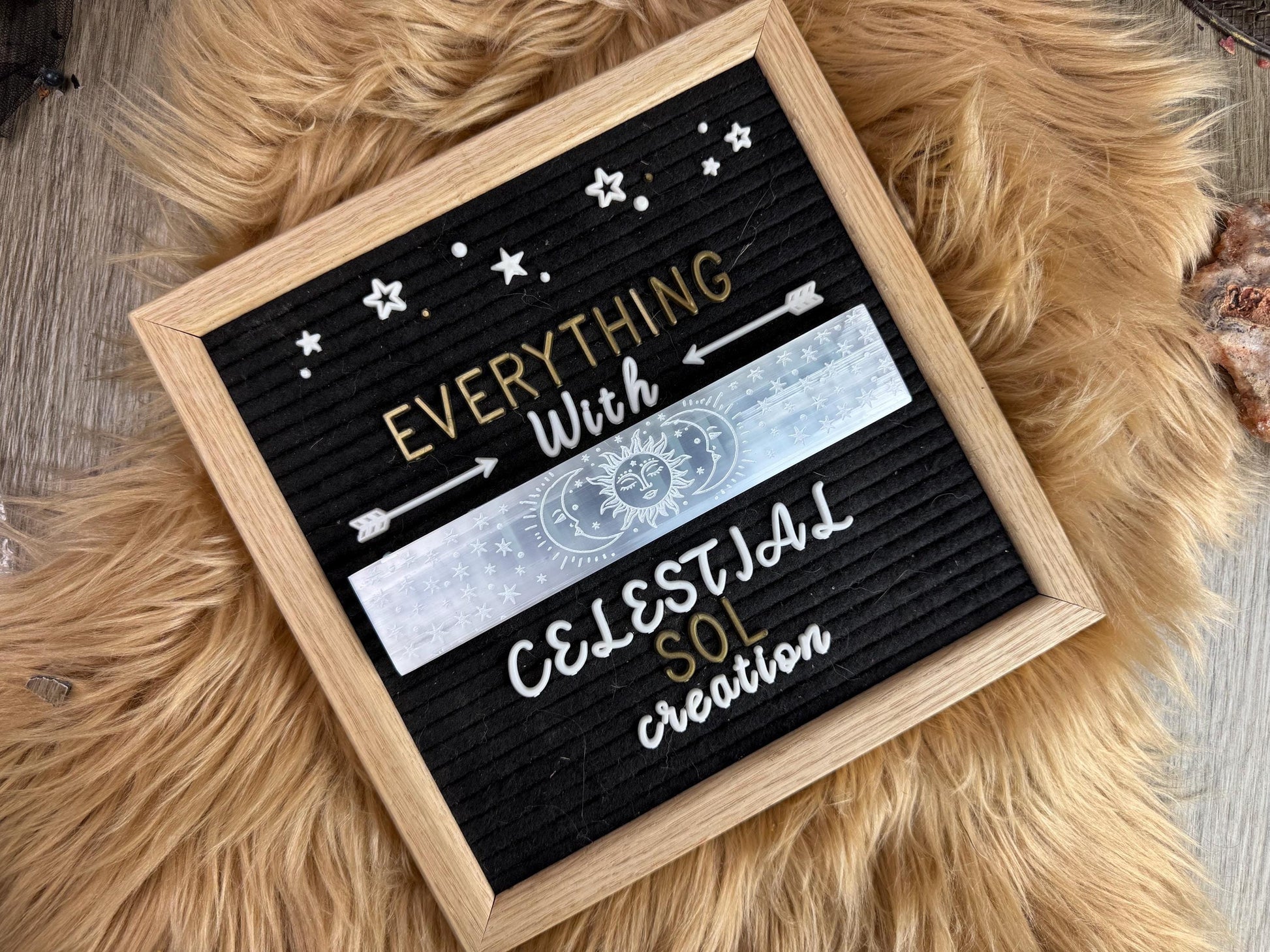 Etched Selenite Charging Plate: Divination Tool for Crystal Cleansing, Manifestation & Witchy Home Decor