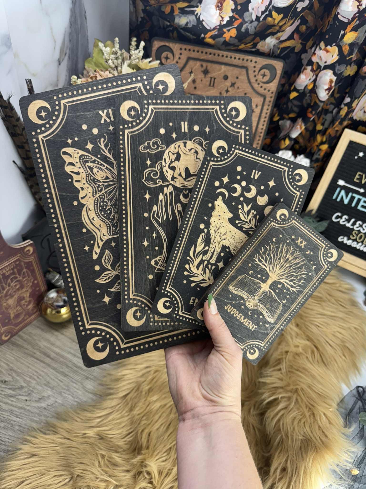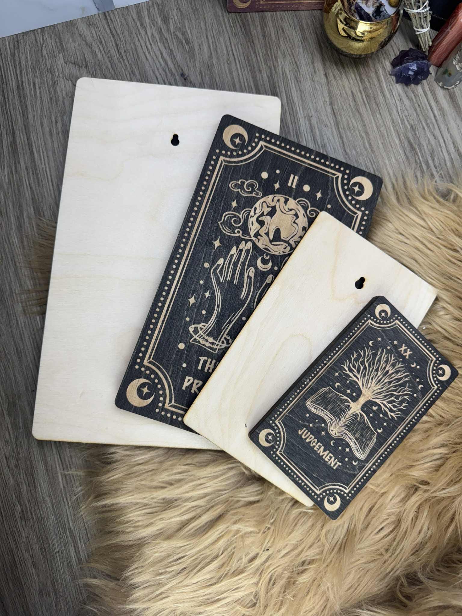 Inspire any space with these beautiful wooden engraved tarot cards. This is the perfect for anyone looking for some witchy style wall décor.