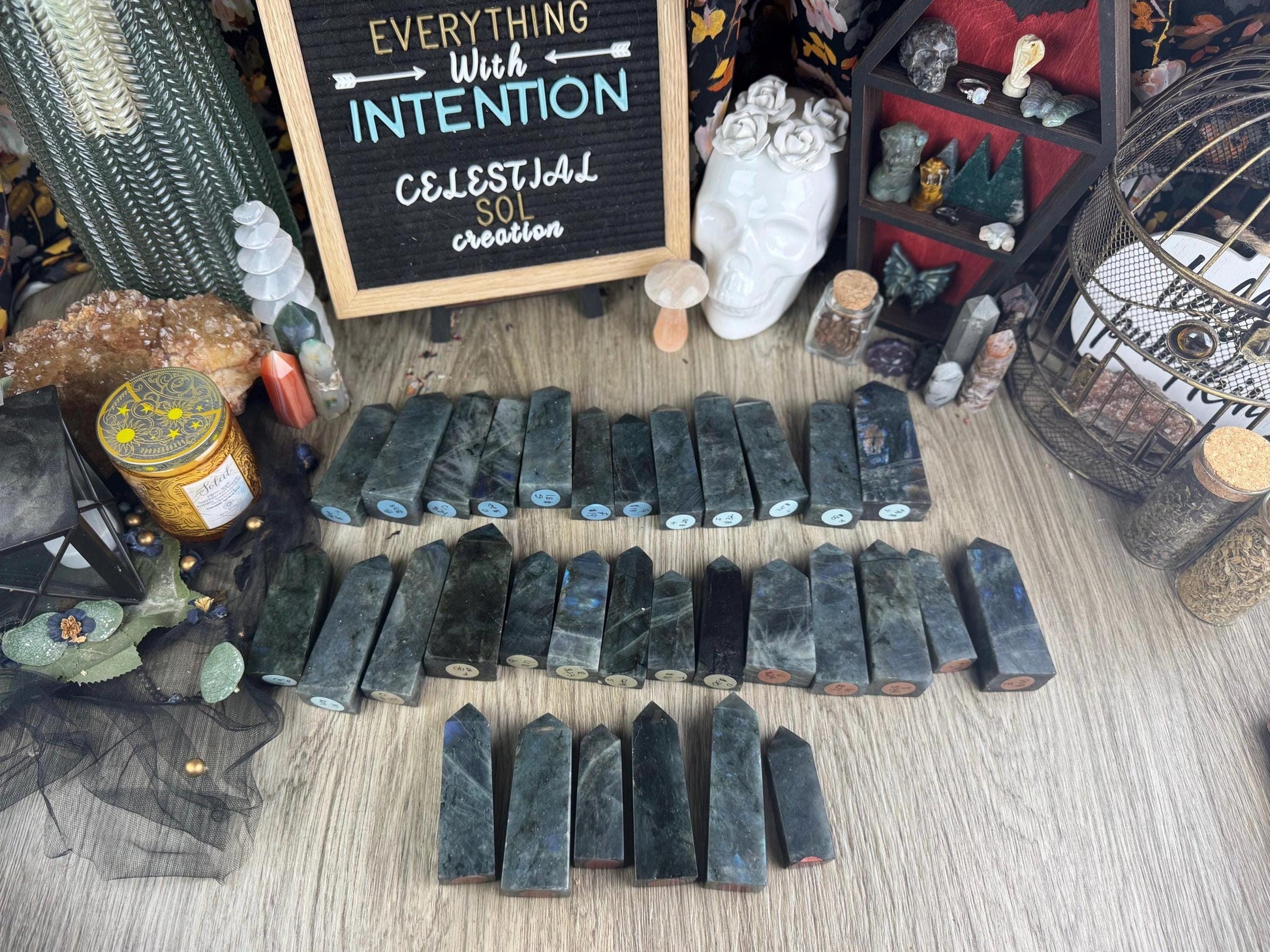 Flashy Labradorite Crystal Tower for Divination, Manifestation & Altar Decor - Witchy Gift