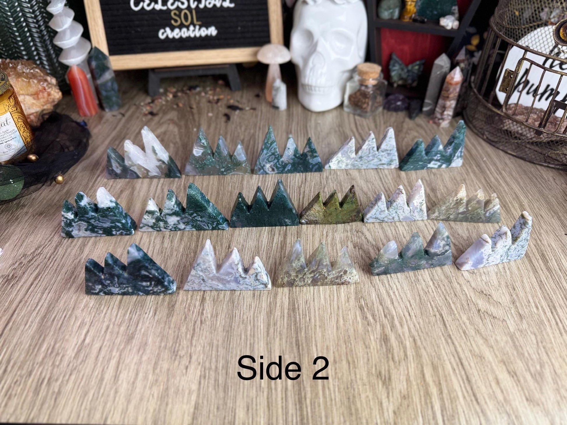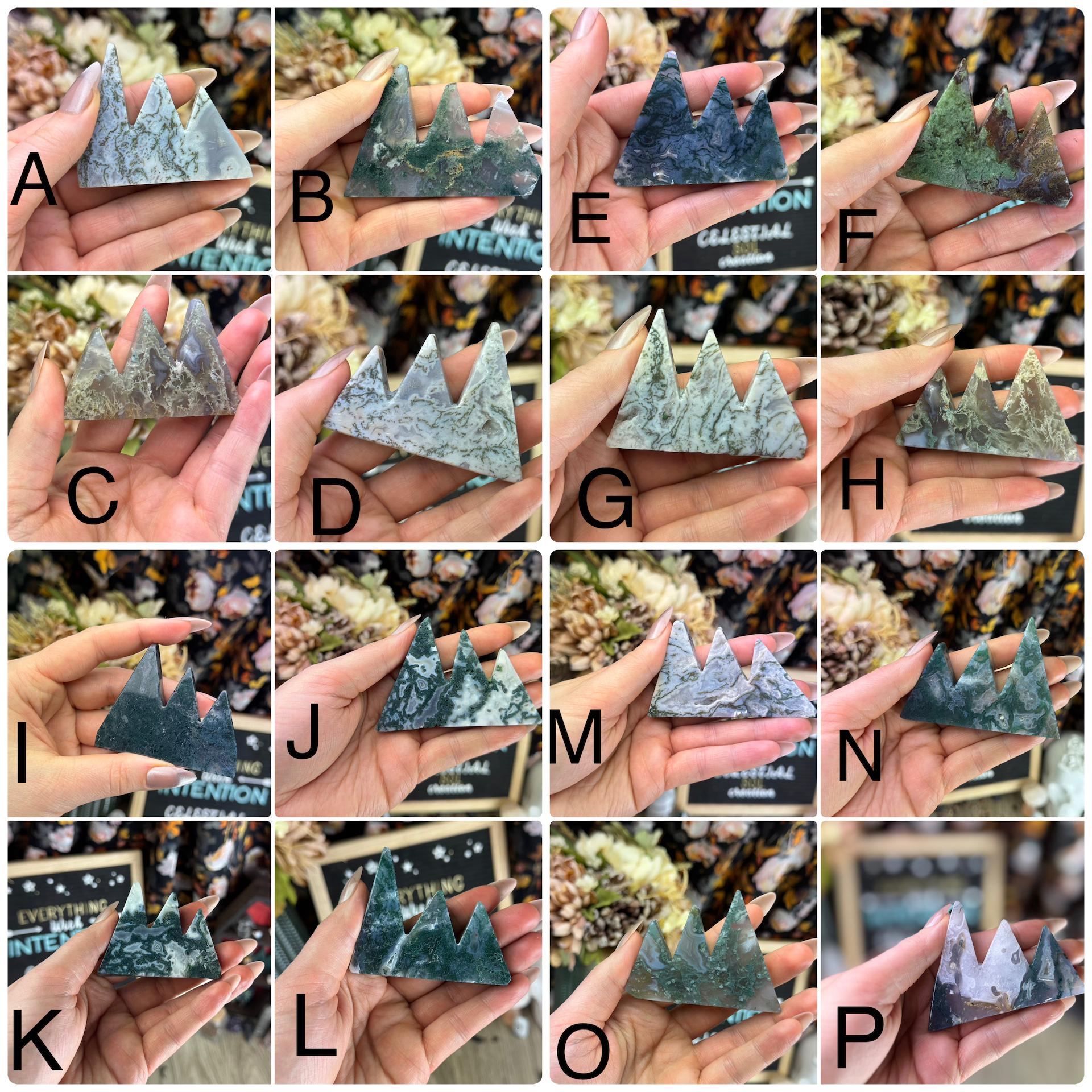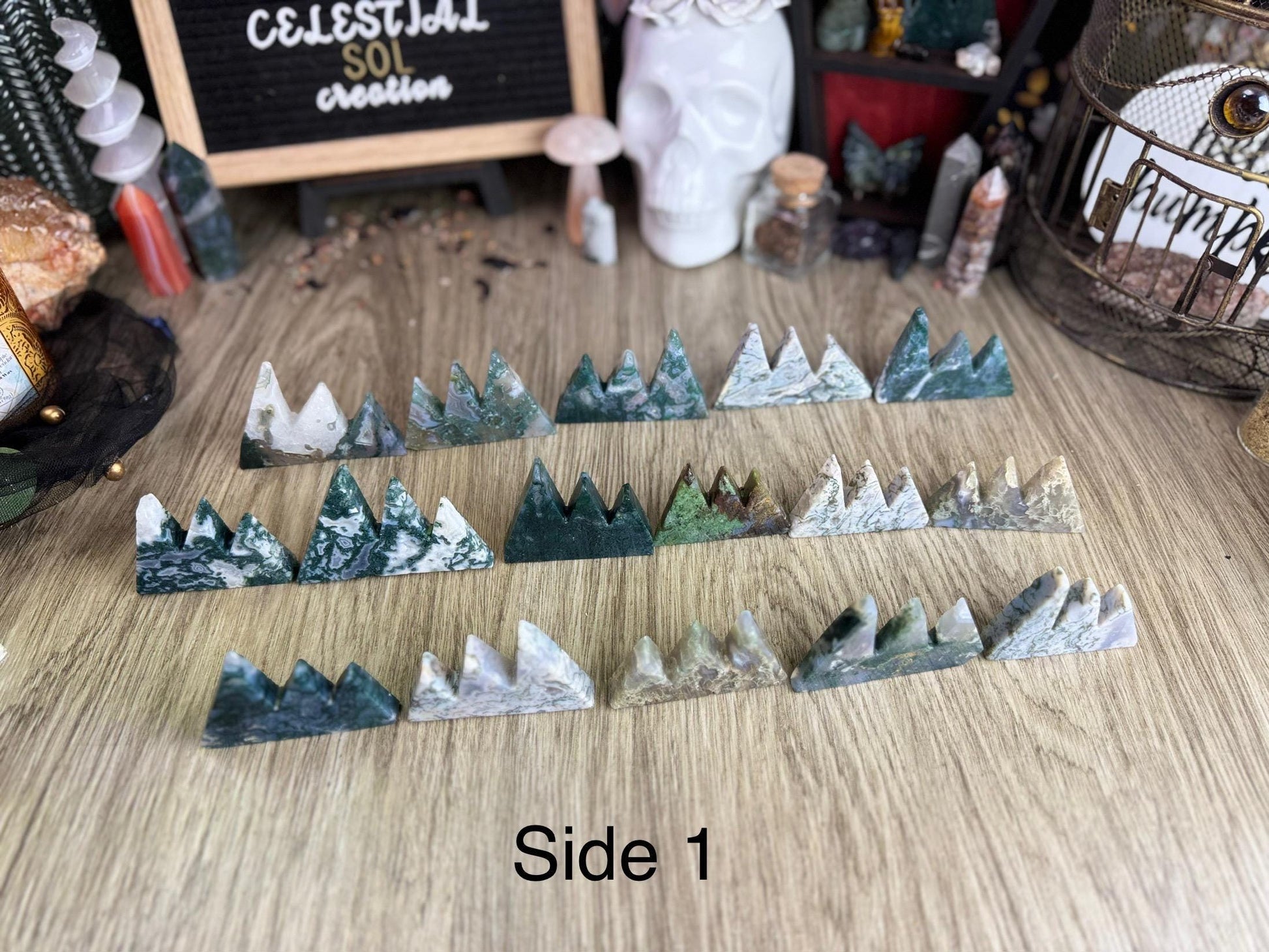 Each Mountain is Unique. They are polished from natural stone and may contail diviations. Some have druzy.