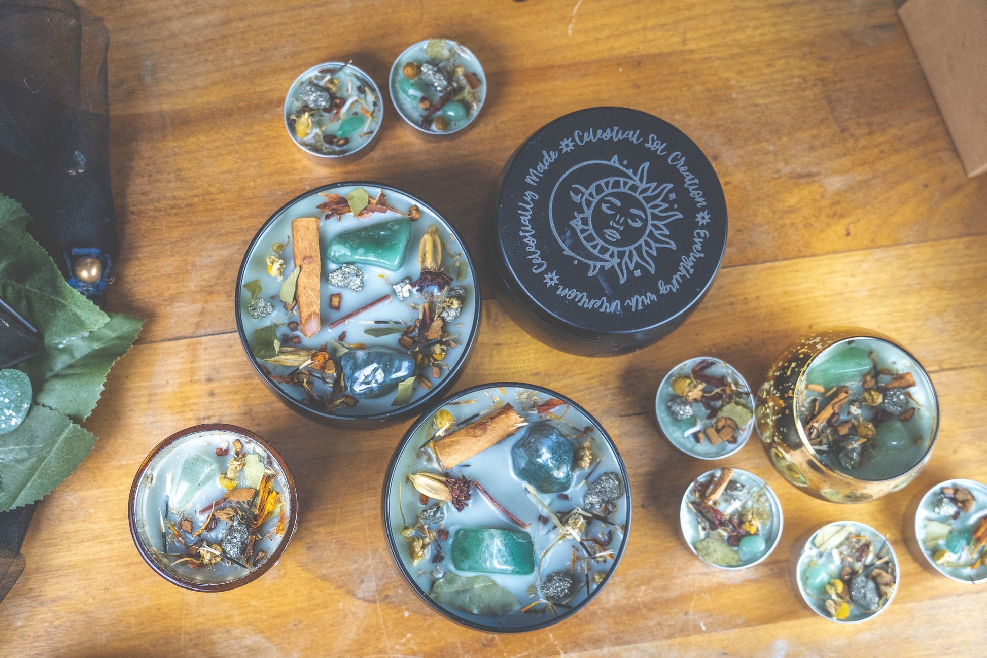 Scented Herbal Intention Candle with Crystals for Prosperity, Abundance & Manifestation